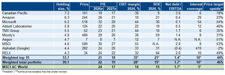 The fund also holds a number of more traditional businesses with significant physical assets and strong networks like Waste Management and Canadian Pacific, Gezelius explains: “These companies and others like Moody’s and Munich Re may be considered ‘boring giants’ but they are also leaders in their respective markets – none will be outcompeted by AI any time soon.”